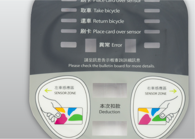 精細的觸控面板印刷及各式銘版提升產品的質感。可使用多種特殊效果,如3D、金屬絲紋、背光效果、雙面印刷、鏡面、水晶、擠凸以及各種特殊油墨,並應用高解析度的四色印刷提供亮麗及栩栩如生的效果。